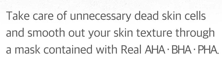 A 100% plant-based biodegradable sheet mask formulated with Real AHA, BHA, and PHA to manage excess sebum, reduce dead skin celts for smoother skin texture, and replenish moisture to soothe the skin. For All skin types especially acne-prone and sensitive skin.